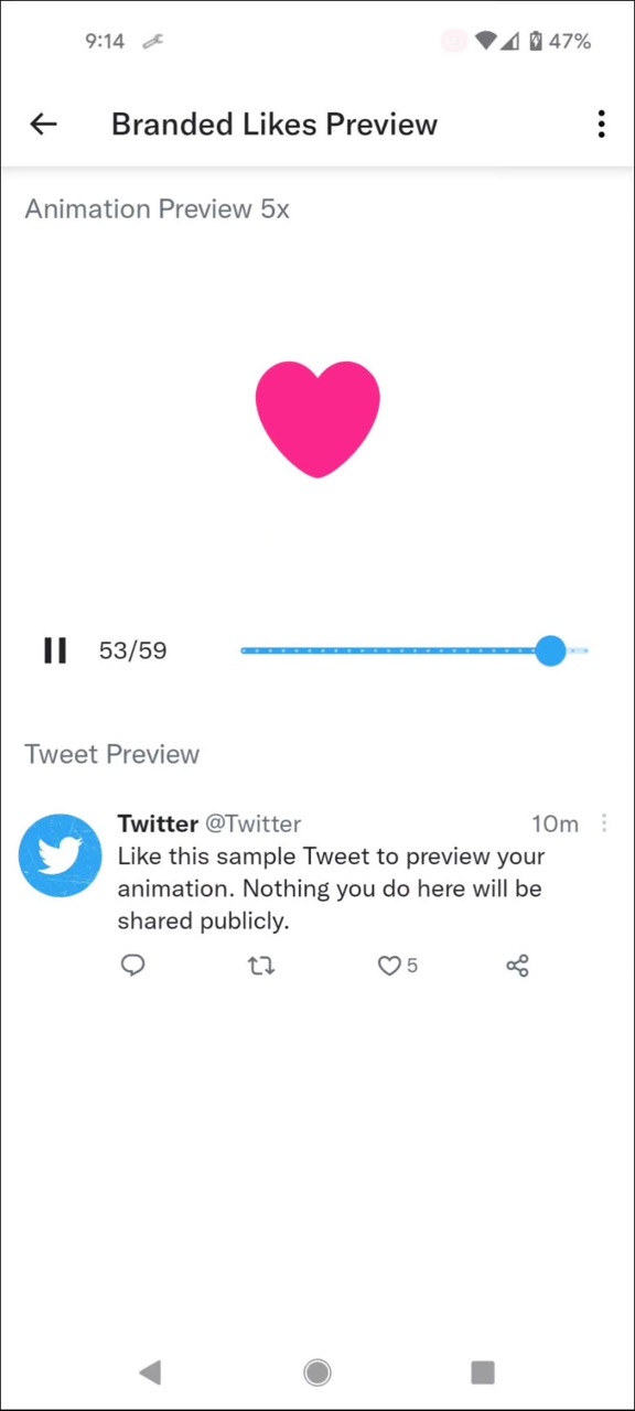 Branded Likes leverages the Lottie animation library to display unique and delightful heart animations to users when they engage with tweets with specific hashtags. There have been over 100 animations so far and some can be found on the third party website, hashflags.io.