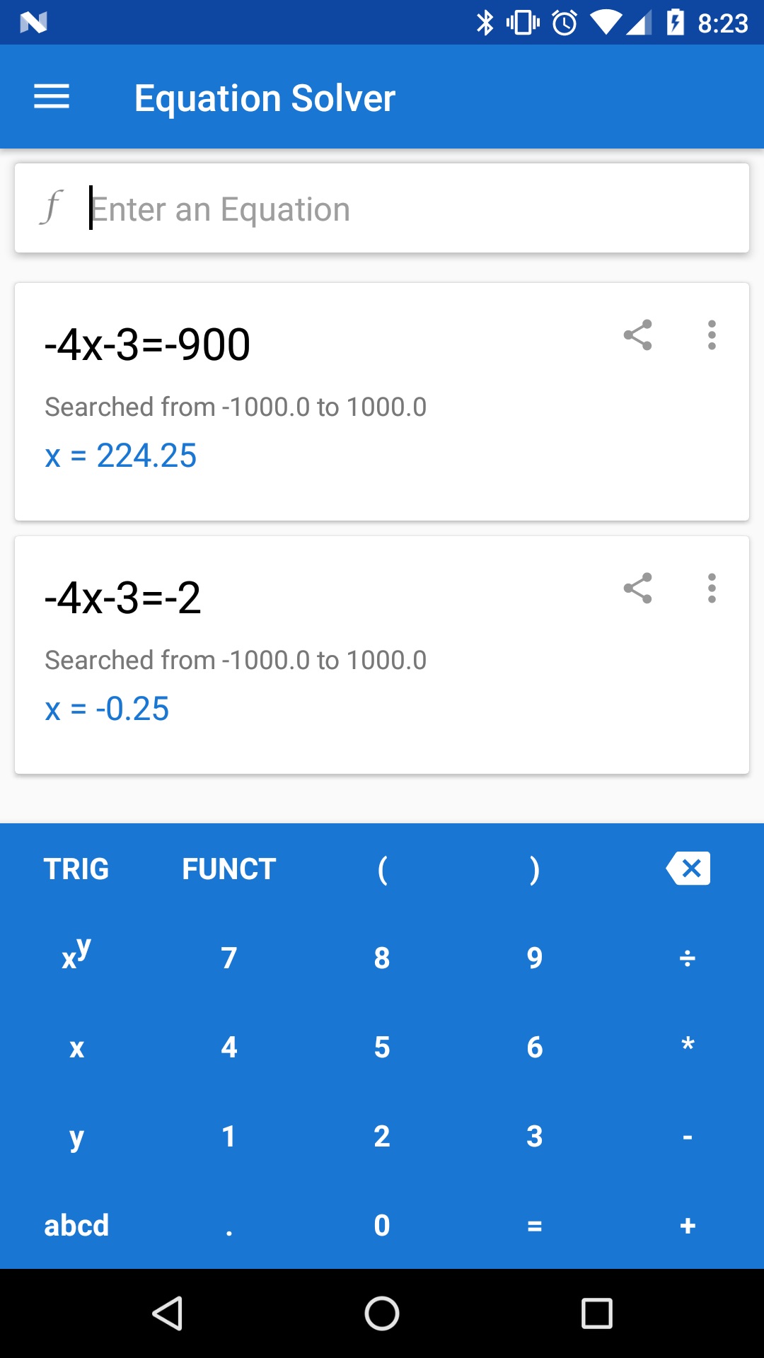 Equation solver is the first major project I created. The app allows users to solve single variable equations as well as repeatedly solve an equation for a certain variable.
