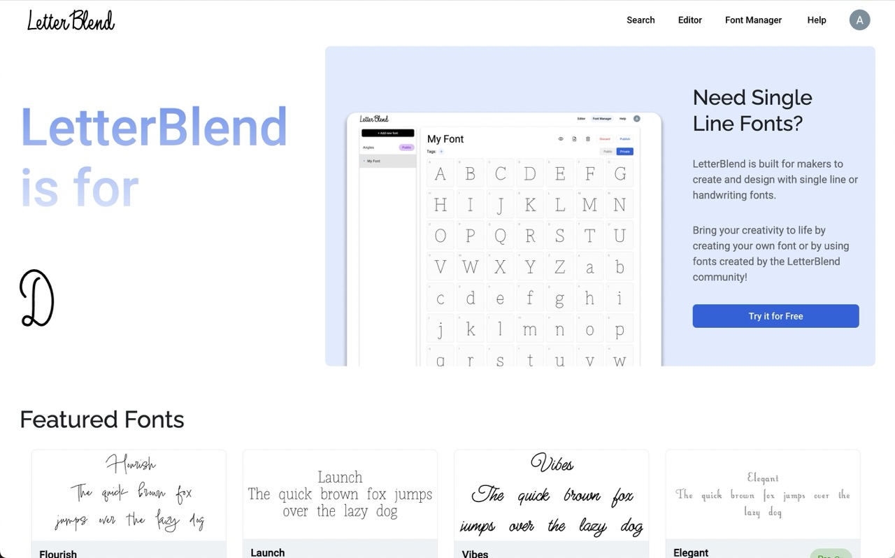 LetterBlend is a website that allows users to work with single line fonts for use with plotter machines like Cricut or in CNC projects.