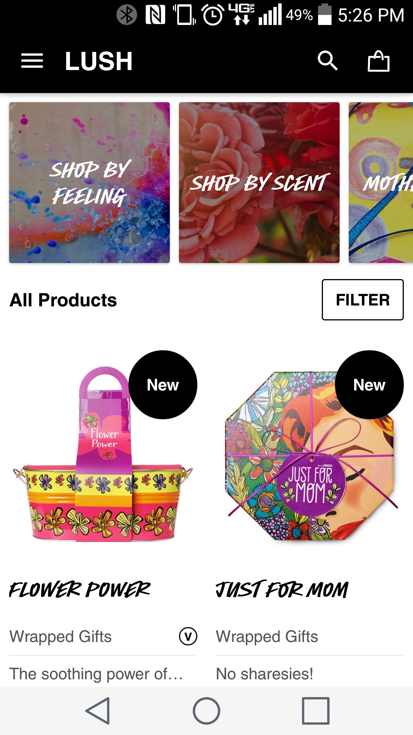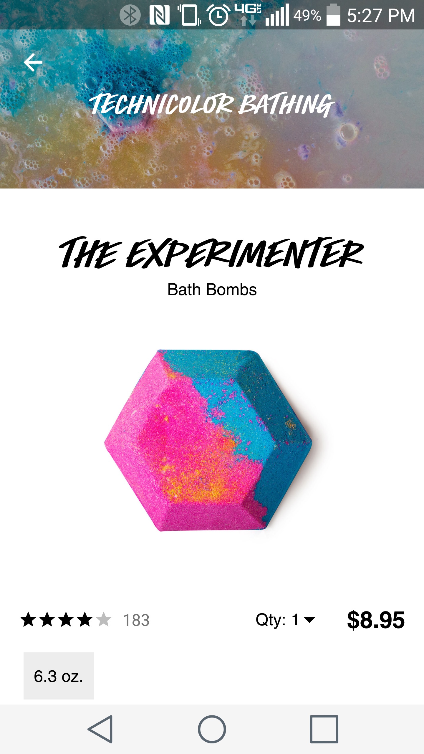LUSH is a company that prides itself on its handmade cosmetics and care products. The app was inspired by their colorful products and company values.