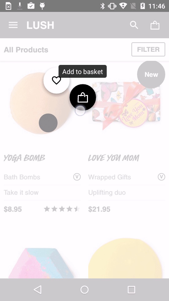 You can find the library in use in the Lush app. It lets users quickly add products to their cart or wishlists without navigating to a detail screen.