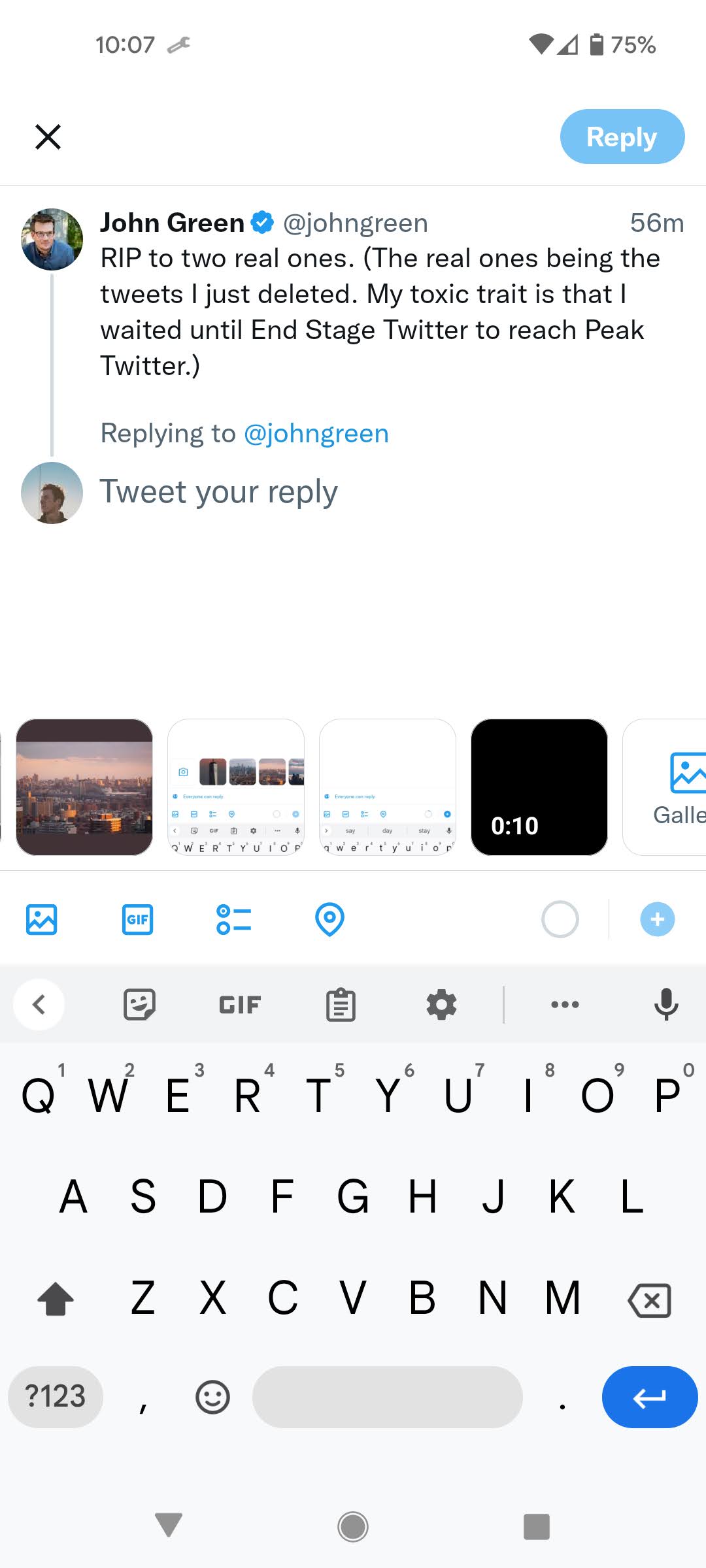 Users can scroll up to view the tweet they are replying to in the reply context area.